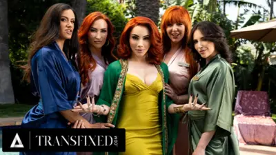TRANSFIXED – Trans Dom Ariel Demure Hosts GROUP SEX ORGY WITH MILF MASSEUSES Penny Barber + MORE!